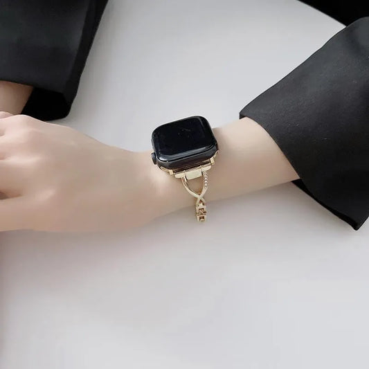 Elegant Rhinestone Chain Apple Watch Band - Gold