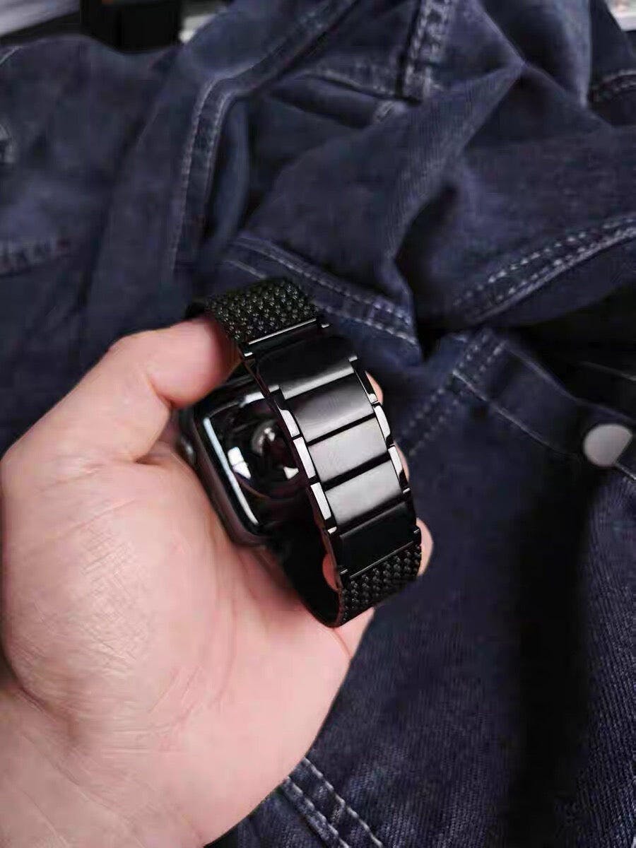 Bracelet de montre Apple en acier inoxydable tressé de qualité supérieure - Noir