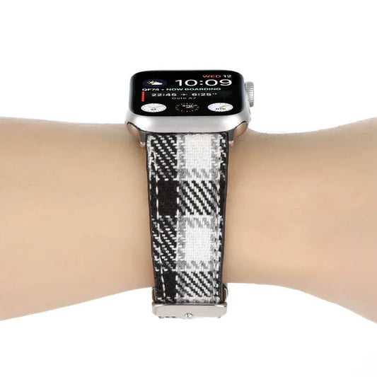 레트로 트위드 체크 애플워치 스트랩 - 검정 & 흰색